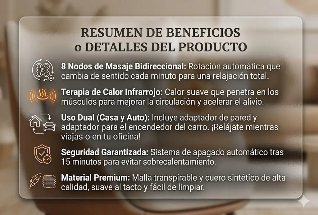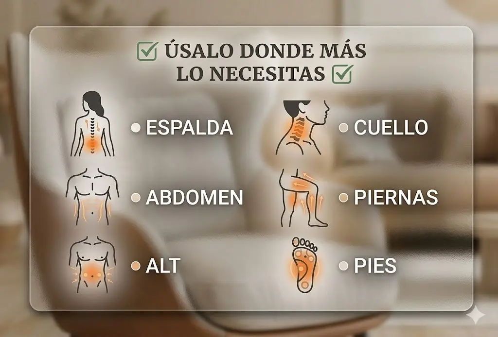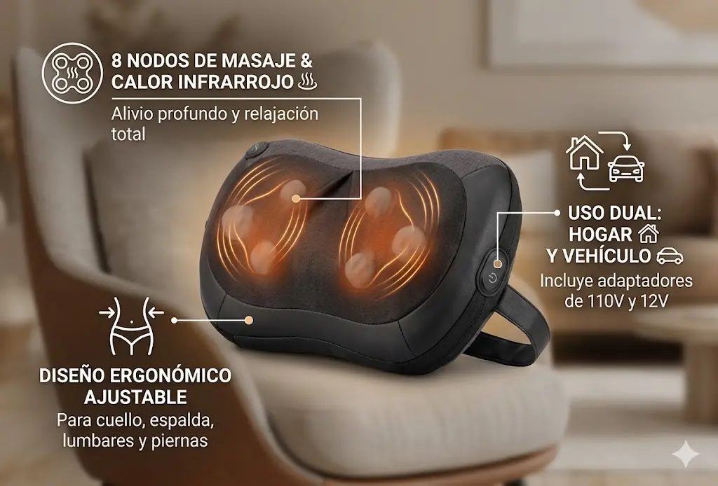 Sufro de dolor lumbar y este masajeador ha sido un alivio total. Lo uso todos los días después del trabajo y la diferencia es increíble. ¡Totalmente recomendado!