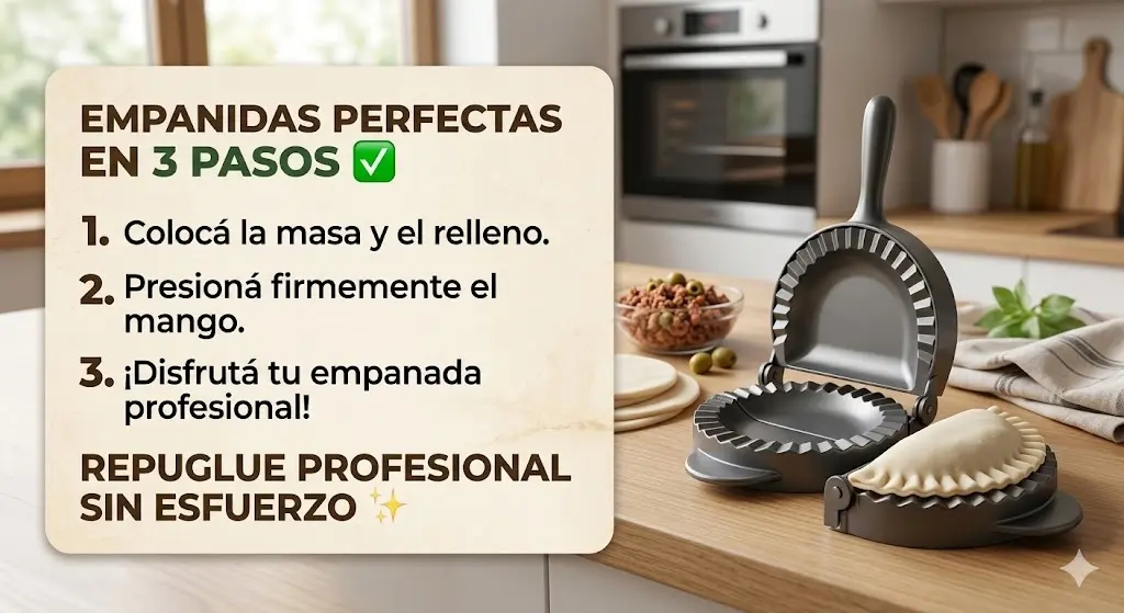 Descripción Dile Adiós a las🥟DesigualesDe Alta Calidad➡️Muy cómodo para crear.✨Sella con precisión y uniformes.🧽Limpieza fácil.👩🍳Para principiantes como para expertos en la cocina.⏱️Ahorro de tiempo en producción.🥳Disfrute en reuniones , fiestas o tarde de antojos🎉.🗄️Fácil de almacenar en la cocina.🍽️Ideal para diversos platos.📖Para variedad de recetas.👌En un Solo Paso👌💥¡DESCUENTO ESPECIAL POR TIEMPO LIMITADO⏰!🔥Antes: $64.706 🎉Hoy solo: $55.000 COP✔️Aprovecha el 15% OFF y prepara empanadas perfectas en segundos✔️. ¡Agrégalo al carrito🛒!Atención Personalizada y Soporte.